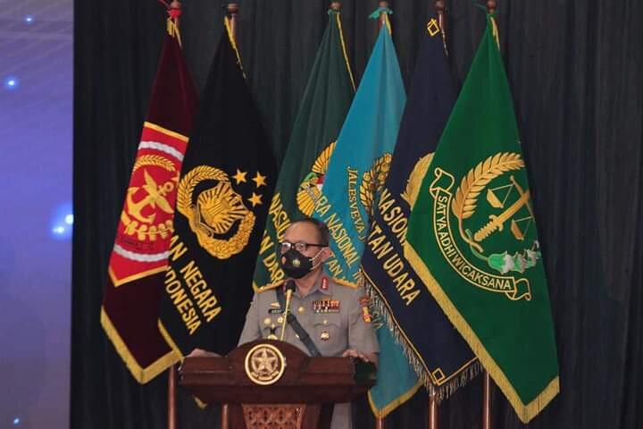 Kapolri Jenderal Idham Azis, yang diwakili Wakapolri Komjen Gatot Eddy Pramono, memberikan sambutannya secara virtual Zoom. Dalam kesempatan itu, Komjen Gatot Eddy menyampaikan pesan kepada para lulusan Sespimti dan Sespimmen untuk menjadi agen perubahan.