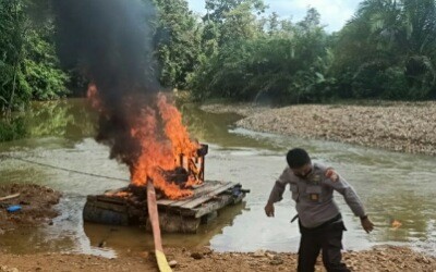 Selanjutnya 1 rakit untuk mendompeng, 2 Asbuk dan 1 pondok terpal dibakar agar tidak bisa digunakan lagi. Tidak ditemukannya warga yang sedang melakukan aktivitas PETI karena kegiatan sudah dihentikan sebelumnya karena takut tertangkap oleh aparat karena banyaknya info tentang hal tersebut.