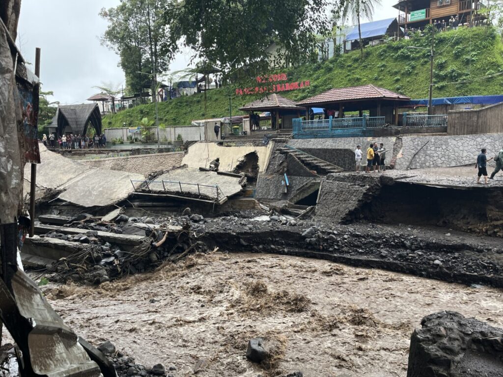 “Air naik sangat cepat. Jembatan yang biasa dilewati wisatawan akhirnya roboh karena tidak kuat menahan hantaman arus,” tambahnya.