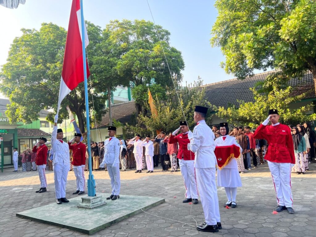 BANTUL – Di halaman MAN 2 Bantul, Jalan Parangtritis Km 10,5 Sabdodadi Bantul, Hari Minggu, 17 Agustus 2025 mulai pukul 07.00 WIB hingga selesai berlangsung Upacara Peringatan Hari Ulang Tahun ke-80 Kemerdekaan Republik Indonesia. Upacara peringatan yang tahun ini pemerintah mengusung tema nasional: “Bersatu, Berdaulat, Rakyat Sejahtera, Indonesia Maju”. Tema tersebut menjadi identitas utama rangkaian pesta kemerdekaan untuk mengokohkan semangat persatuan, kedaulatan, kesejahteraan, dan kemajuan bangsa.