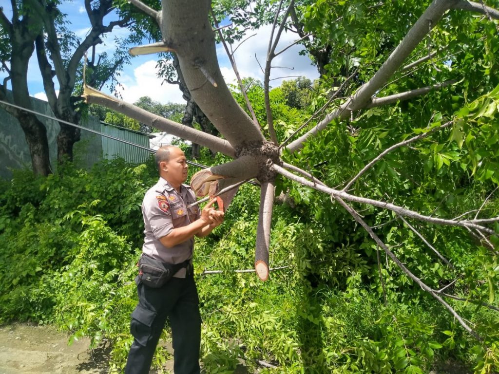 Lombok Utara | Teliksandi.id – Pawas bersama Kasium dan anggota jaga membersihkan ranting pohon yang tumbang di jalan raya santong tepatnya di Dusun Empak Mayong Desa Kayangan Kecamatan Kayangan KLU, Minggu 28/02/2021.