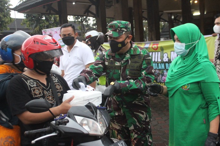 Pembagian Takjil dan Masker yang dilakukan oleh Babinsa jajaran Kodim 0714/Salatiga bersama anggota Polres Semarang dengan menggunakan Sepeda motor yang dilepas secara langsung oleh Danrem 073/Makutarama bersama dengann Bupati Semarang yang didampingi oleh pejabat Forkopimda.