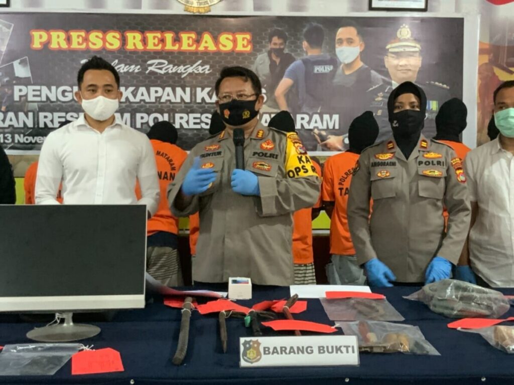 ‘’ Kami menangkap 7 pelaku. Enam pelaku spesialis kasus pencurian. Satunya lagi itu yang memprovokasi warga saat petugas melakukan penangkapan di Kelurahan Jempong Baru. Mereka ini beraksi di 67 TKP dari tahun 2019,’’ ungkap Kapolresta Mataram, Kombes Pol Guntur Herditrianto. Jumat (13/11/2020).