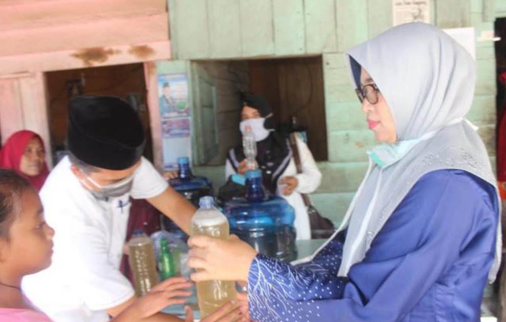Pasaman Barat, TelikSandi.ID – Ketua TP PKK Pasaman Barat Sifrowati Yulianto bersama Tim dari dinas Kesehatan dan Lingkungan Hidup Hari ini, Rabu, (1/4) kembali membagikan cairan anti septik alami kepada masyarakat.
