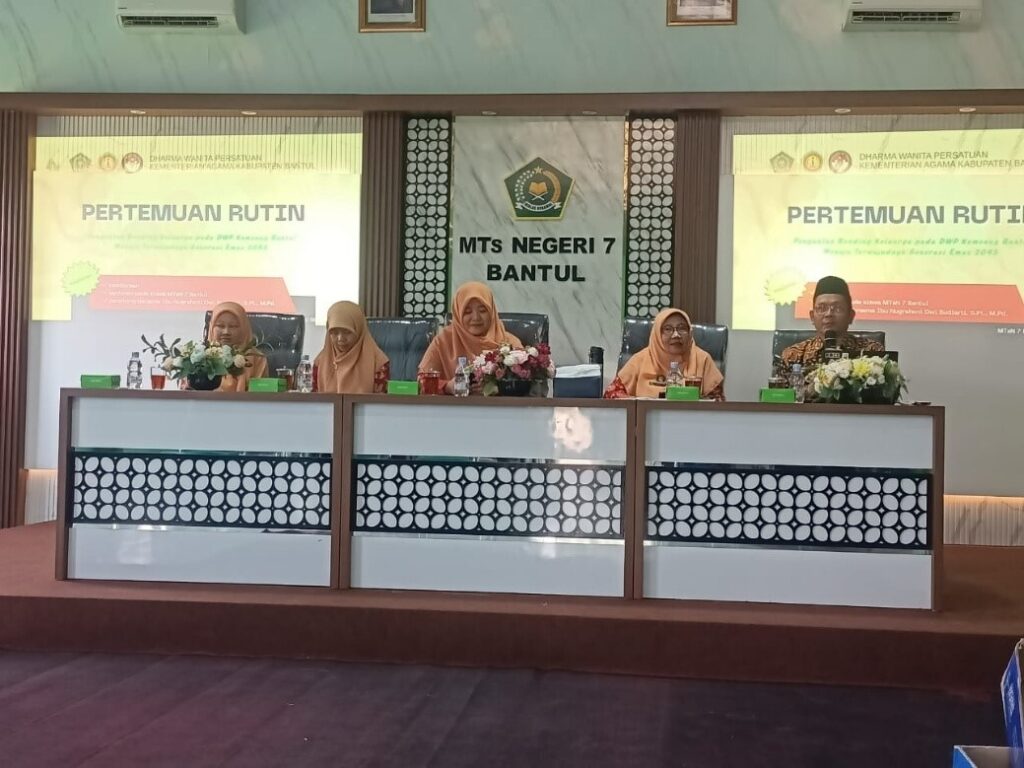 Bantul, 28 Mei 2025 — Dua guru dari MAN 2 Bantul, Sumardiasih, S.Pd. dan Sri Suharyanti, S.Pd., menghadiri pertemuan rutin Dharma Wanita Persatuan (DWP) Kementerian Agama Kabupaten Bantul yang diselenggarakan di MTs Negeri 7 Bantul pada Rabu, 28 Mei 2025. Kegiatan ini diikuti oleh para anggota DWP dari berbagai satuan kerja di lingkungan Kemenag Bantul, termasuk perwakilan dari madrasah aliyah, tsanawiyah, dan ibtidaiyah.