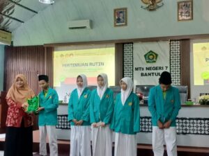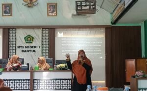 Materi parenting dalam pertemuan DWP Kemenag Bantul tentang penguatan bonding keluarga dalam menyiapkan generasi emas 2045 disampaikan oleh narasumber Nugraheni Dwi Budiarti, S.Pt., M.Pd. “Ikatan keluarga yang sangat erat akan mempengaruhi dalam tumbuh kembang anak-anak ke depan sebagai pemimpin masa depan”, ujarnya. Peran ibu dalam membangun ikatan keluarga merupakan peran utama untuk menciptakan hubungan batin dan keharmonisan seluruh keluarga. Selain parenting, pertemuan DWP Kemenag Bantul membarikan tali asih kepada siswa-siswi MTs N 7 Bantul serta disuguhi juga dengan tari “Gumregah” dari siswa-siswi MTs N 7 Bantul.