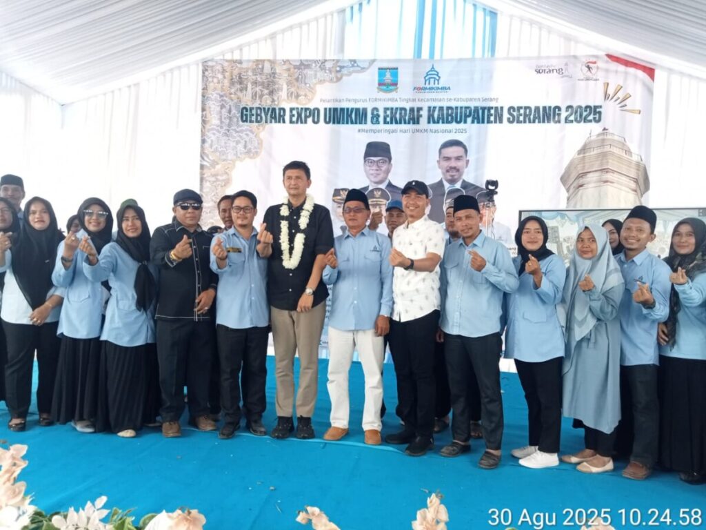 Mancak Serang//Teliksandi.id,- Dalam rangka memperingati hari UMKM Nasional tahun 2025 para pengusaha Usaha Mikro, Kecil, dan Menengah (UMKM) binaan Formikimba Kabupaten Serang menyelenggarakan Gebyar Expo UMKM dan Ekraf serta dirangkaikan dengan pelantikan pengurus Formikimba Kecamatan se-Kabupaten Serang.