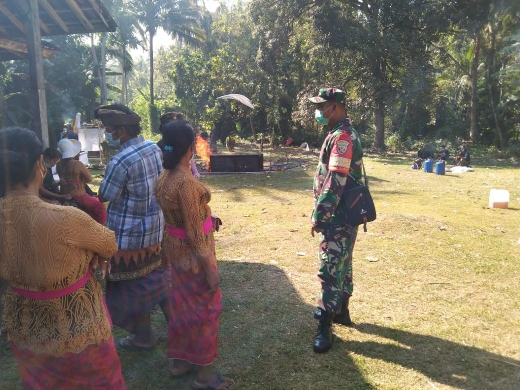 Seperti halnya yang dilakukan oleh Serma Ketut Suburyana ( Babinsa Gumbrih ) yang melaksanakan pengamanan dan penerapan pendisiplinan protokol kesehatan serta menghimbau masyarakat pada giat Upacara Ngaben yang dilaksanakan di Banjar Rukun, Desa Gumbrih, Kecamatan Pekutatan.