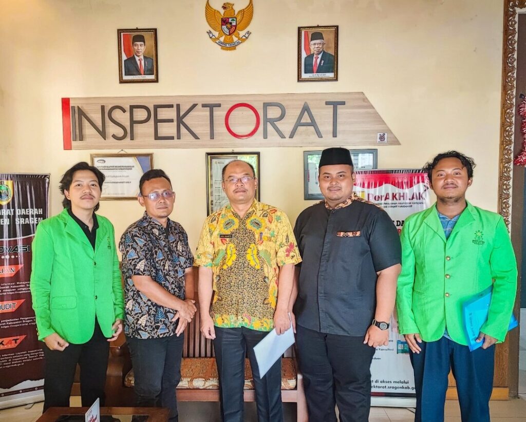 R.T. Farid Husin R., S.H., bersama Tim Advokasi Hukum dan HAM mendatangi Inspektorat Kabupaten Sragen diterima dan disambut langsung oleh Inspektur Kabupaten Sragen Badrus Samsu Darusi dan Joko Sunaryo.