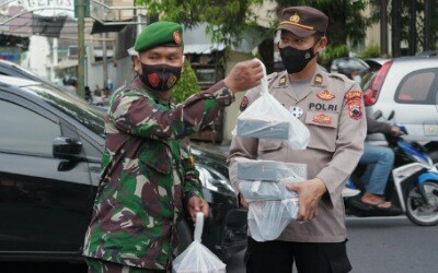 Klaten | Teliksandi.id – Polres Klaten bersama Kodim 0723/Klaten membagikan takjil dan masker gratis kepada pengguna jalan, Senin (3/5/21). Kegiatan dilangsungkan di depan Makodim setempat dan dipimpin langsung oleh Kapolres Klaten AKBP Edy Suranta Sitepu SIK MH dan Dandim 0723/Klaten Letkol Inf Joni Eko Prasetyo SIP.