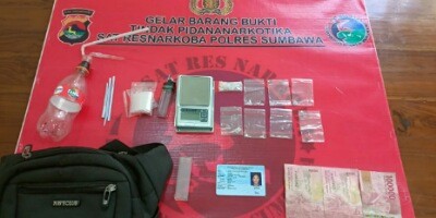 Kapolres Sumbawa AKBP Widy Saputra, S.IK. melalui Kasubbag Humas AKP Sumardi, S.Sos., membenarkan. Dikatakan, dalam penangkapan tersebut, tim menemukan barang bukti 8 poket sabu seberat 3,82 gram. Selain itu, tim mengamankan barang bukti lain berupa timbangan digital, bong, pipa kaca, korek gas, skop, sumbu, serta uang tunai.