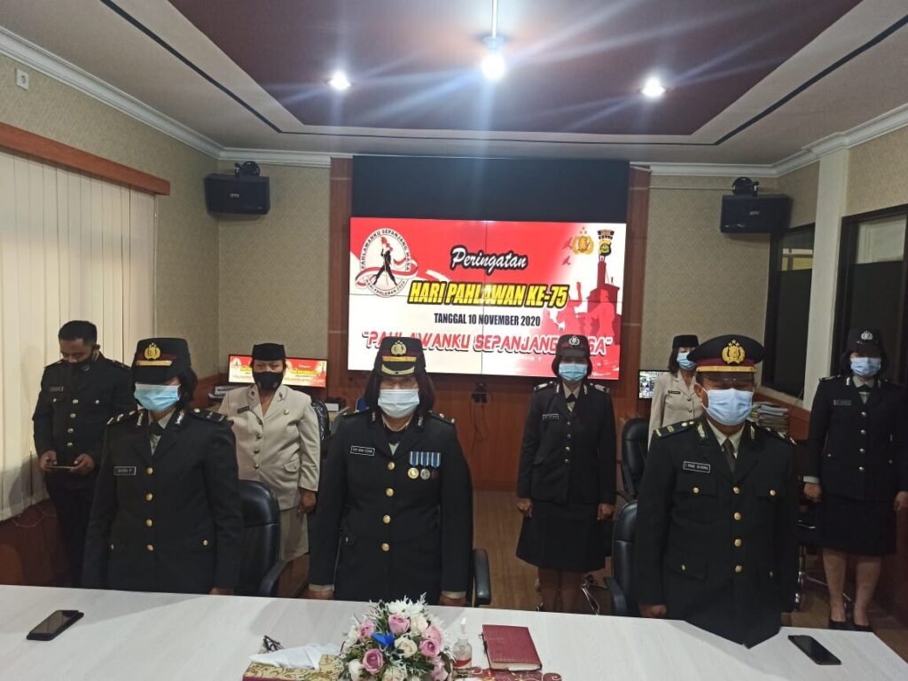 BADUNG | Teliksandi.id – Bertempat di Ruang Command Center Polres Badung, Kabag Sumda Kompol Ni Luh Putu Indra Puspani, S.Sos, M.Ap mengikuti / nonton Upacara Peringatan Hari Pahlawan Tahun 2020 dengan tema “Pahlawanku Sepanjang Masa” dengan Irup Presiden RI di TMPNU Kalibata, Jakarta. Selasa, (10/11) pagi pukul 09.00 wita.