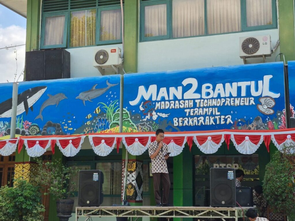 Bantul – Suasana halaman MAN 2 Bantul pada Kamis (14/8/2025) sore terasa semarak dan penuh antusiasme. Ratusan siswa dari berbagai kelas memadati area kampanye untuk menyaksikan kampanye terbuka Calon Ketua OSIS Periode 2025–2026 dengan nomor urut 1, pasangan Ahmad Faizin Firdaus dan Selnadia Wening. Kegiatan ini merupakan bagian dari rangkaian Pemilihan Ketua OSIS (Pemilos) Tahun 2025 yang diselenggarakan oleh PPO MAN 2 Bantul.