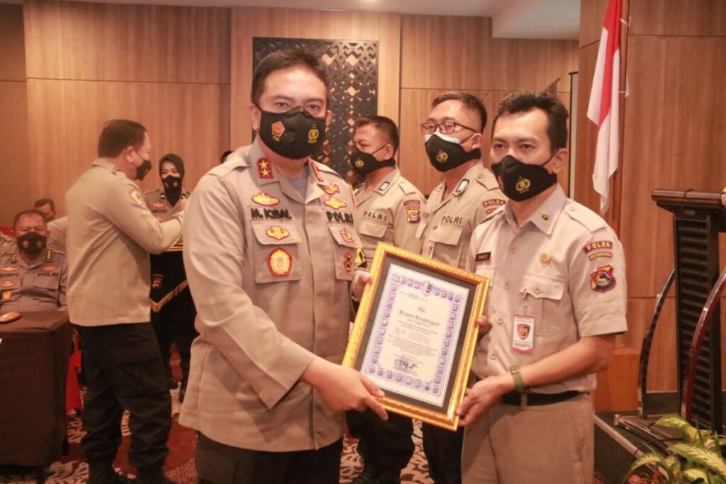 Serta Piagam Penghargaan Kapolda NTB kepada Operator SIMAK BMN Satker Jajaran Polda NTB yang berprestasi yaitu