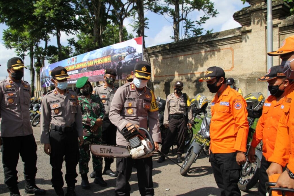 Kapolres Badung AKBP Roby Septiadi. SIK mengatakan wilayah Kabupaten Badung masuk dalam daerah yang berpotensi mengalami bencana alam seperti banjir dan tanah longsor, guna mengantisipasi hal tersebut pemerintah kabupaten menggelar apel kesiapsiagaan Bencana alam.