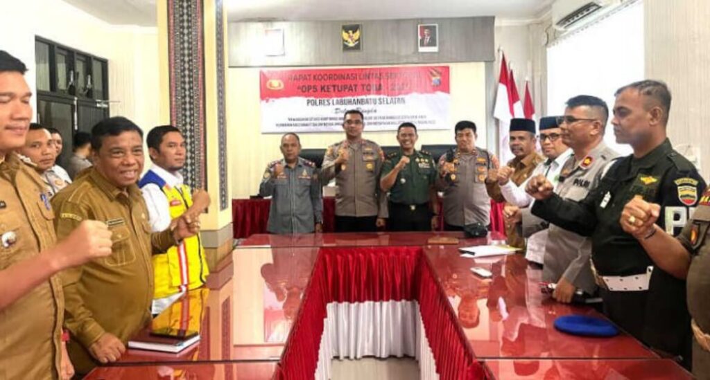 Labusel | TELIKSANDI.id – Kapolres Labuhanbatu Selatan AKBP Arfin Fachreza S.H,.S.I.K,.MH.adakan rapat koordinasi mengenai keamanan dan ketertiban masyarakat (Kamtibmas) serta keamanan, keselamatan, ketertiban, dan kelancaran berlalu lintas (Kamseltibcarlantas) yang kondusif selama bulan suci ramadhan dan perayaan Idul Fitri 1446 H, tahun 2025 ini. Polres Labuhanbatu Selatan menggelar Rapat Koordinasi Lintas Sektoral “Operasi Ketupat Toba 2025” pada Selasa (18/3/2025).