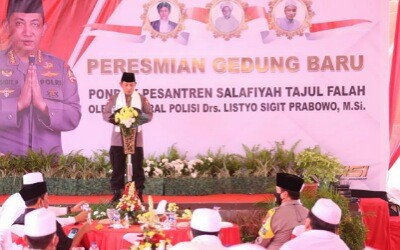 “Saat menjabat Kapolda Banten sampai saat ini silaturahmi tidak pernah putus. Walaupun saat ini posisi saya jauh, namun tali silaturahmi dengan para ulama tetap terjaga,” kata Kapolri saat meresmikan gedung baru Ponpes Tajul Falah.