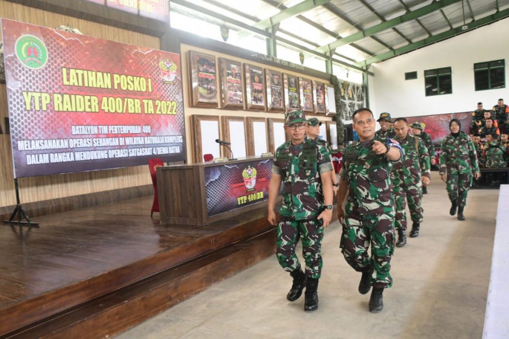 Baturaja,Teliksandi.id-Kasdam IV/Diponegoro Brigjen TNI Parwito didampingi Asrendam IV/Diponegoro Kol Inf Wisnu Kurniawan, S.Sos., M.I.P. meninjau pelaksanaan latihan antar kecabangan Batalyon Tim Pertempuran (YTP) Yonif R 400/Banteng Raider di Pusat Latihan Tempur (Puslatpur) Kodiklatad yang berada di Baturaja, Kab. OKU, Sumatera Selatan, Selasa (20/9/2022).