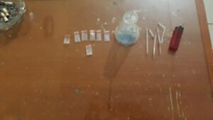Lalu personel mengibaskan celana tersebut ditemukan 1 plastik transparan ukuran kecil yang berisikan butiran kristal yang diduga sabu, kemudian dilakukan pengeledahan kerumah terduga.