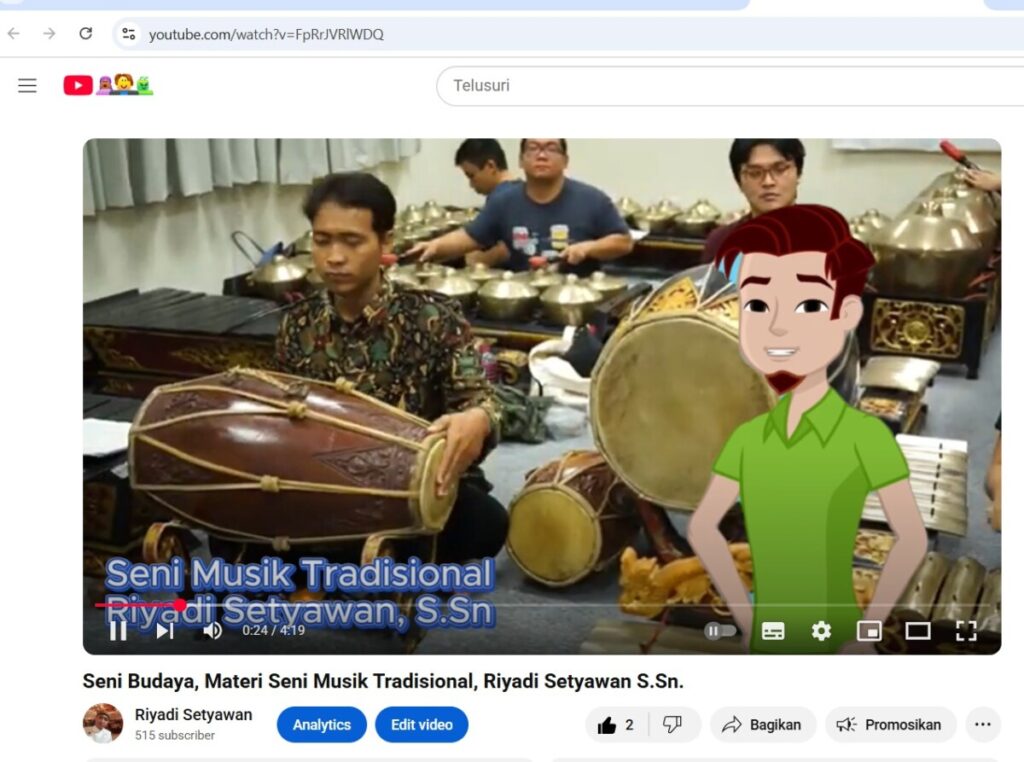 Karya video pembelajaran ini merupakan hasil dari pelatihan “Pintar Kemenag” tentang optimalisasi penggunaan AI dalam dunia pendidikan. Setelah mengikuti pelatihan tersebut, Riyadi mengembangkan video edukatif yang memadukan animasi AI dengan cuplikan langsung dari praktik seni budaya, sehingga pembelajaran menjadi lebih hidup, kontekstual, dan mudah dipahami oleh siswa.