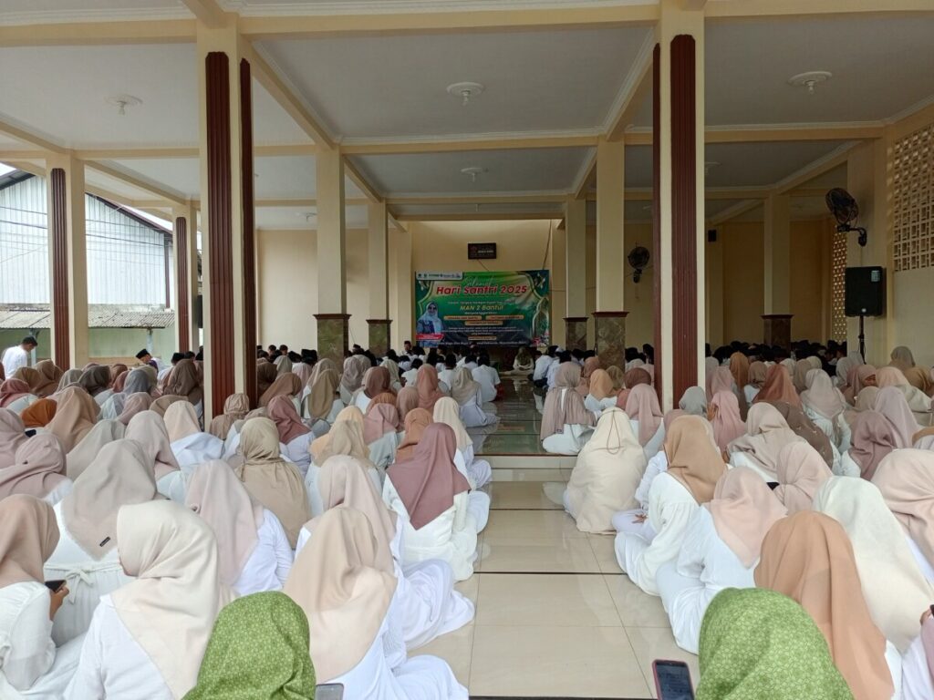 Bantul, 22 Oktober 2025 — Dalam rangka memperingati Hari Santri Nasional yang jatuh pada Rabu, 22 Oktober 2025, MAN 2 Bantul menggelar rangkaian kegiatan religius yang berlangsung khidmat di Masjid MAN 2 Bantul. Acara ini diawali dengan khataman Al-Qur’an 30 juz yang diikuti oleh guru dan siswa-siswi madrasah, sebagai bentuk rasa syukur sekaligus penghormatan terhadap perjuangan para santri dan ulama dalam menegakkan nilai-nilai Islam di Indonesia.