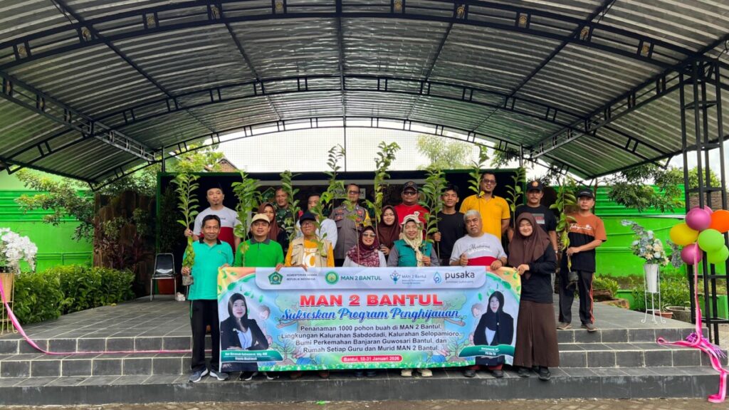Bantul — (MAN 2 Bantul) MAN 2 Bantul kembali menegaskan komitmennya dalam implementasi Panca Cinta, khususnya pada bidang cinta lingkungan, melalui kegiatan pembagian dan penanaman pohon produktif serta tanaman penghijauan. Kegiatan ini dilaksanakan pada Jumat, 9 Januari 2025 bertempat di Halaman MAN 2 Bantul, dan diikuti oleh seluruh warga madrasah serta berbagai pemangku kepentingan di wilayah Kalurahan Sabdodadi.