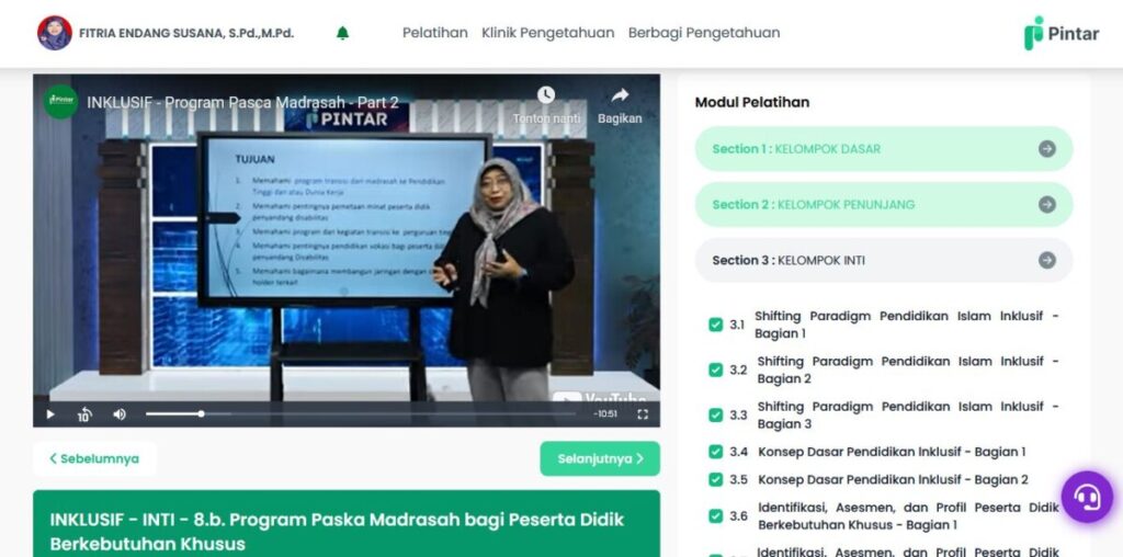 MOOC Pintar adalah platform pembelajaran daring yang dikembangkan oleh Kementerian Agama untuk meningkatkan akses pelatihan bagi guru di seluruh Indonesia. Melalui MOOC Pintar, pelatihan Madrasah Inklusi dapat diikuti secara fleksibel dan berbasis teknologi.