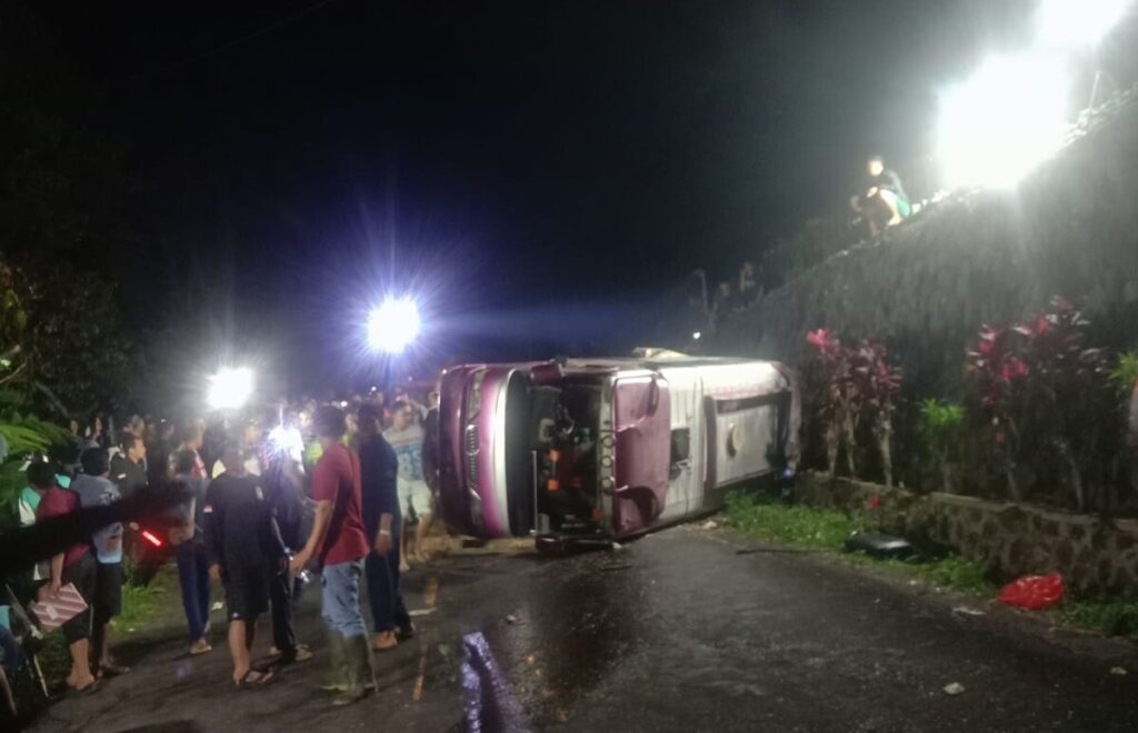 Karanganyar — Teliksandi.id, Senin, 2 Juni 2025. Sebuah kecelakaan tunggal menimpa minibus bernomor polisi AD 7266 AF di tanjakan selatan Parkir C Gunung Kendil, kawasan Astana Giribangun, Dusun Dengkeng, Desa Karangbangun, Kecamatan Matesih, Kabupaten Karanganyar, pada Minggu (1/6) sekitar pukul 19.00 WIB.