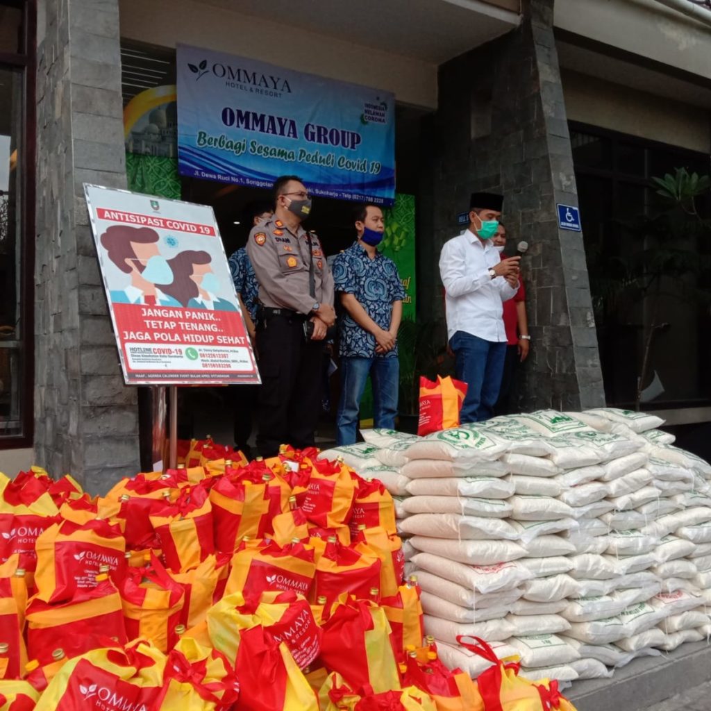 Sukoharjo | Teliksandi.id – Owner Hotel Ommaya Bp Ommaya didampingi Hetining Setyowati istrinya mengatakan Ommaya group gentan Baki Sukoharjo membagikan sembako kepada sebagian warga tukang becak, securiry agar meringnkn beban mereka untuk kebutuhan sehari hari.
