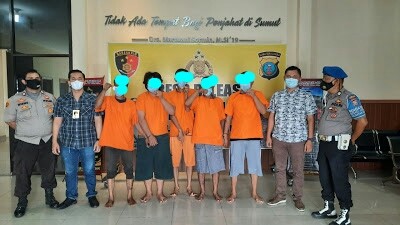 Kelima tersangka yang diamankan tersebut bernama Edi Saputra alias Dudung (45) penduduk Perumahan Kuis Indah Permai blok DD 13 Paya Gambar, Kec. Batang Kuis (Non TO), Bio Fradess (46) penduduk Jalan Selamat Pulau, Kec. Medan Amplas (Non TO), dan Defri Sanusi Lubis (52) warga Jalan SM. Raja Gg. Pembangunan Baru, Kel. Sitirejo II, Kec. Medan Amplas (TO Tempat), Budiman T alias Anto (35) warga Jalan Panglima Denai Terminal Amplas Kec. Medan Amplas (TO Orang) serta Rianto (32) warga Jalan Balai Desa Desa Gg. Ceria No. 25 Pasar 12 Desa Marindal II Kec. Patumbak Kab. Deli Serdang (Non TO).