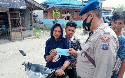 Dalam Operasi tersebut Personel Sat Pol Air Bripka M. Arifin bersama 3 Personel Sat Pol Air memberikan masker sebanyak 25 masker kepada masyarakat maupun Pengendara yang melintas tanpa mematuhi prokes.