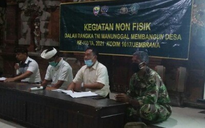 Jembrana, Bali | Teliksandi.id – Program TMMD (Tentara Manunggal Membangun Desa) ke 110 tahun 2021 yang di gelar Kodim 1617/ Jembrana melaksanakan Sasaran Fisik dan Sasaran Non Fisik. Salah satu kegiatan sasaran Non Fisik yang dilaksanakan diantaranya yaitu memberikan penyuluhan kepada warga tentang Bahaya Penyalahgunaan dan Peredaran Gelap Narkoba dan dalam kegiatan tersebut bertindak Selaku narasumber yakni KBO Satuan Reserse Narkoba Polres Jembrana ( Iptu I Km Tri Atmajaya ) yang pelaksanaannya bertempat di Balai Banjar Batuagung. Jembrana (12/3/2021).