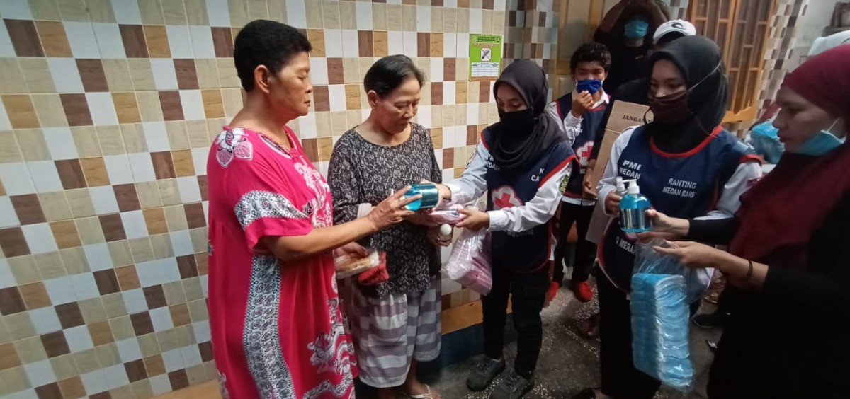 MEDAN | Teliksandi.id – Peringati Hari Relawan Nasional Palang Merah Indonesia (PMI), yang jatuh pada Sabtu 26 Desember 2020 lalu. Palang Merah Indonesia (PMI) Kota Medan melaksanakan pembagian masker, hand sanitizer dan masker kepada warga Kampung Sejahtera, di Jalan Haji Zainul Arifin, Minggu (27/12/2020) pagi. Pembagian berupa 500 paket ini sebagai wujud membantu pemerintah dalam mencegah penyebaran Covid-19.