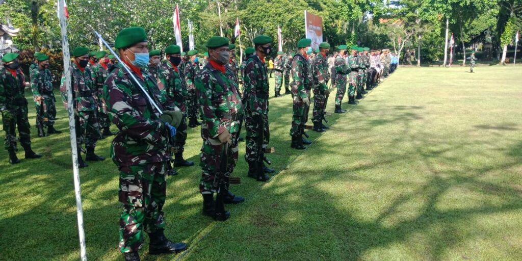 BALI, JEMBRANA | Teliksandi.id – Memperingati hari Hari Pahlawan yang ke-75 tanggal 10 Nopember 2020, satu peleton personel Kodim 1617 Jembrana mengikuti upacara peringatan hari pahlawan yang berlangsung di Taman Pecangakan, Kelurahan Dauhwaru Jembrana, Selasa (10/11/2010)