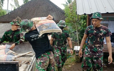 “Personel kita bagi tugas, Warga dan Personel Satgas yang memiliki kemampuan tukang bersama-sama fokus pada pemasangan batu senderan, sementara yang lain ada yang menyiapkan material dan ada yang menyiapkan adonan” Ucap Kapten Karyanto.