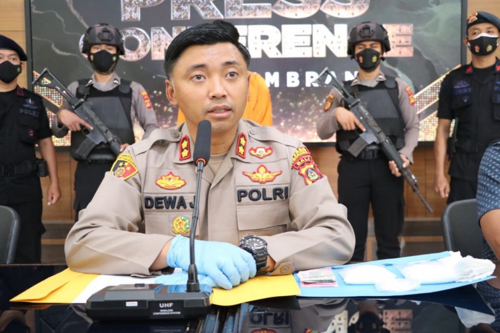 Melalui gelar Pres Release yang bertempat di Aula Polres Jembrana, pada Sabtu (4/6/2022) pukul 10.54 Wita. Kapolres Jembrana AKBP I Dewa Gde Juliana, S.H., S.I.K., M.I.K., didampingi oleh Danyon C Pelopor Sat Brimob Polda Bali dan Kasat Narkoba Polres Jembrana ia menyampaikan bahwa, terduga pelaku tindak pidana Narkotika tersebut berinisial S (31) asal Sampang, Madura Jawa Timur.