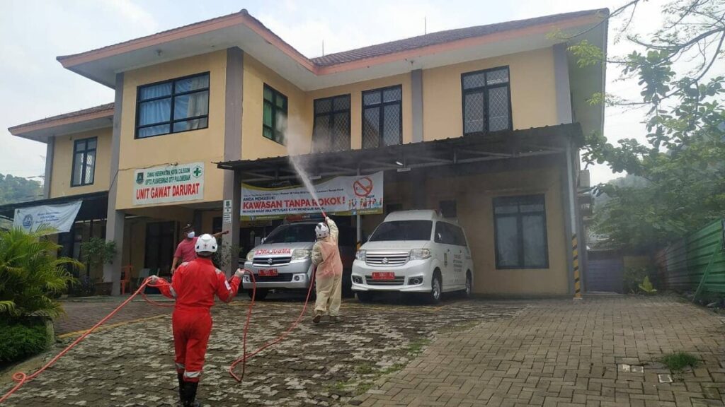 CILEGON | Teliksandi.id – Dalam rangka memberikan pelayanan terbaiknya bagi masyarakat yang akan berobat serta upaya dalam Pencehan Covid19, hari ini Sabtu (7/11/2020) Tim Spraying Palang Merah Indonesia (PMI) Kota Cilegon yang merupakan bagian dari Satuan Gugus Tugas Penanganan Covid19 Kota Cilegon lakukan sterilisasi di Lingkungan Pusat Kesehatan Masyarakat (Puskesmas) Pulomerak Kota Cilegon