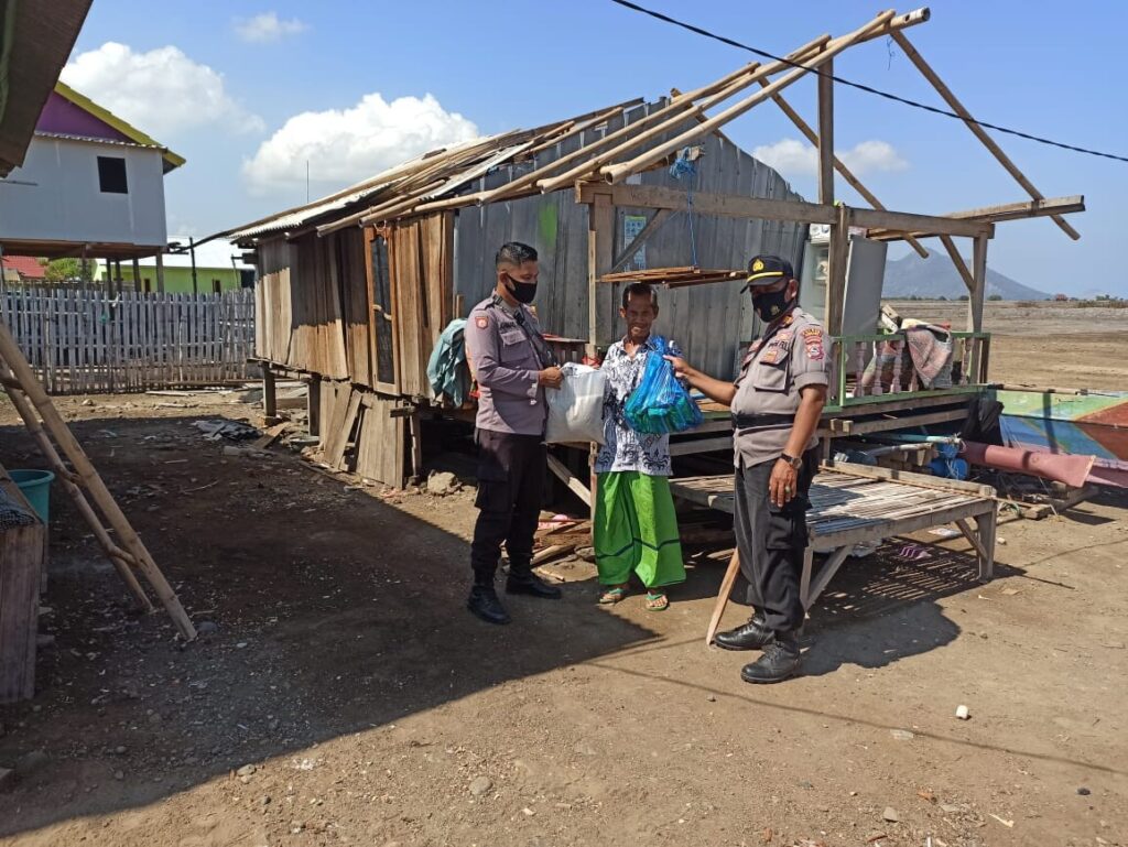 Sebagai bentuk kepedulian terhadap warga terdampak bencana angin puting beliung, personel Polsek Alas Barat menyalurkan bantuan sembako kepada para warga korban bencana, Jumat (13/11/20) pagi.