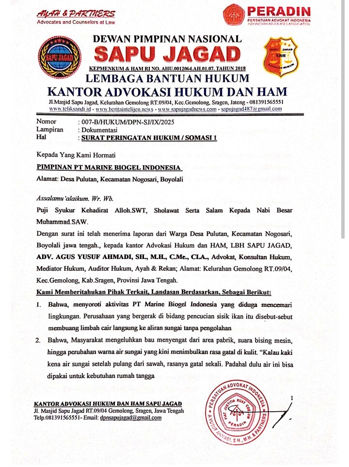 Pihak PT Marine Biogel Indonesia hingga kini belum memberikan klarifikasi atas somasi tersebut.