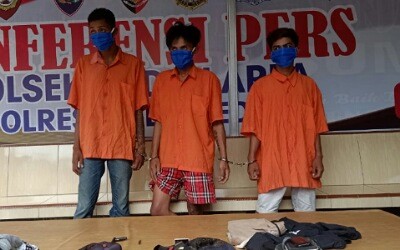 Ketika tim Reskrim melakukan olah TKP, Tim Unit Reskrim mendapatkan informasi bahwa para tersangka berada di Jalan Bromo Ujung Rawa Cangkul IV Gg.Pak Pak Kelurahan TSM III Kecamatan Medan Denai. Petugas Reskrim pun segera meluncur ke alamat yang dituju dan mengamankan ke 3 tersangka ke Mako untuk diproses hukum lebih lanjut.