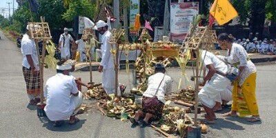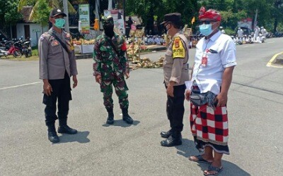 Saat melakukan kegiatan pengamanan di lokasi pelaksanaan Pecaruan Tawur Kesanga di Catus Pata Banjar Nithi Darma Desa Pakraman Gilimanuk. Dalam penyampaiannya Bhabinkamtibmas 2 Kelurahan Gilimanuk Aipda I Nengah Artana mengatakan, mengingat saat ini masih dimasa pandemi diharapkan warga masyarakat yang akan melaksanakan Pecaruan Tawur Kesanga tetap memperhatikan protokol kesehatan. Agar tujuan percepatan sirna nya Covid-19 cepat menjadi kenyataan.