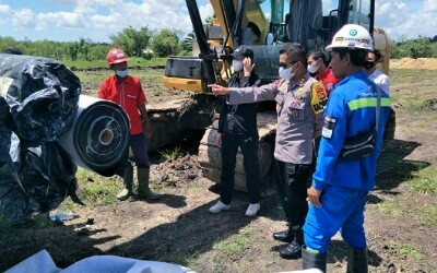Menurut keterangan saksi Kaharudin (operator Excavator), saat kejadian korban sedang melakukan pekerjaan mengangkat gulungan terpal yang akan digunakan sebagai alas timbunan jalan untuk dinaikan ke bucket Excavator.