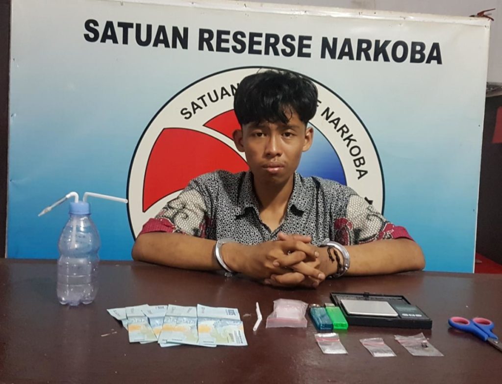 “Di lantai kamar terlapor telah kami amankan barang bukti berupa 2 paket shabu dengan total berat kotor 0,69 Gram, 1 buah timbangan digital, 1 buah bong beseta pipet kaca, 1 buah sendok dari sedotan, 1 buah gunting, 1 buah Handphone merk Xiaomi warna Silver, 2 buah korek api gas dan uang tunai sisa hasil penjualan shabu sebesar Rp. 300.000,” jelas Kasat Narkoba.