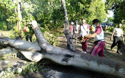 “Tidak butuh waktu lama, akhirnya pohon tumbang dapat dibersihkan, jalan raya yang tertutup oleh pohon kini dapat dilalui oleh pengendara,” tuturnya.