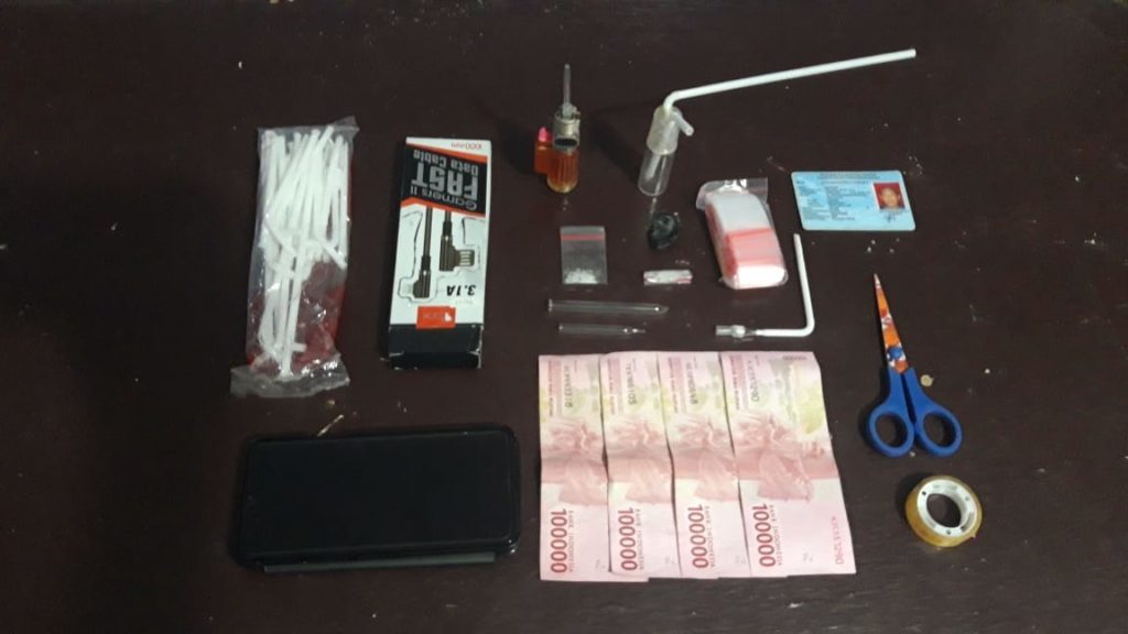 Juan menambahkan, pihaknya juga mengamankan barang bukti lain berupa bong (alat penghisap sabu), korek api, handphone (gawai), pipet kaca serta uang tunai Rp. 400.000,-.