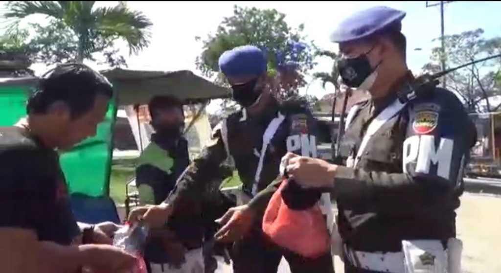 Belawan | Teliksandi.id – Dalam rangka penegakan Pemberlakuan Pembatasan Kegiatan Masyarakat (PPKM), Subdenpom I/5-1 Belawan dibawah pimpinan Komandan Subdenpom I/5-1 Belawan Kapten Cpm Moh.Arfai Lukman,S,St, Han,S.IP bersama personil melakukan sosialisasi sekaligus membagikan sembako kepada para penarik becak bermotor diseputaran Kota Belawan, Jumat (23/7/2021) sekira pukul 10.00 Wib.