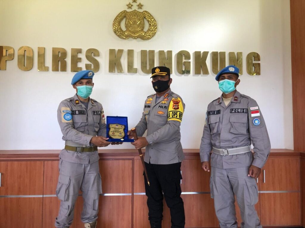 “Terima kasih sudah melaksanakan tugas dengan baik di Afrika Tengah, dapat menyesuaikan dengan situasi dan kondisi medan yang ada. Tugas ini sangat berat karena membawa nama baik negara, institusi Polri khususnya Polres Klungkung,” kata Bima Aria Viyasa.
