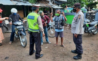 LOMBOK UTARA | Teliksandi.id – Polsek Tanjung melaksanakan kegiatan rawan pagi, penertiban lokasi area parkir dan aktifitas kerumunan warga, masyarakat dan mengatur jarak antar pedagang, serta sosialisasi pencegahan penyebaran Covid-19 bertempat di pasar Tanjung Dusun. Majalangu, Desa Sokong, Kecamatan Tanjung, KLU. Sabtu, (20/02/2021).