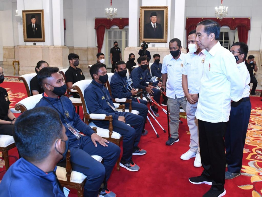 Jakarta,Teliksandi.id-Presiden Joko Widodo menerima pengurus Persatuan Sepak Bola Amputasi Indonesia (PSAI) dan para atlet serta pelatih tim nasional (timnas) sepak bola amputasi di Istana Negara, Jakarta, pada Rabu, 21 September 2022. Dalam sambutan pengantarnya, Presiden Jokowi mengaku senang atas prestasi lolosnya timnas sepak bola amputasi Indonesia ke Piala Dunia Sepak Bola Amputasi Tahun 2022.