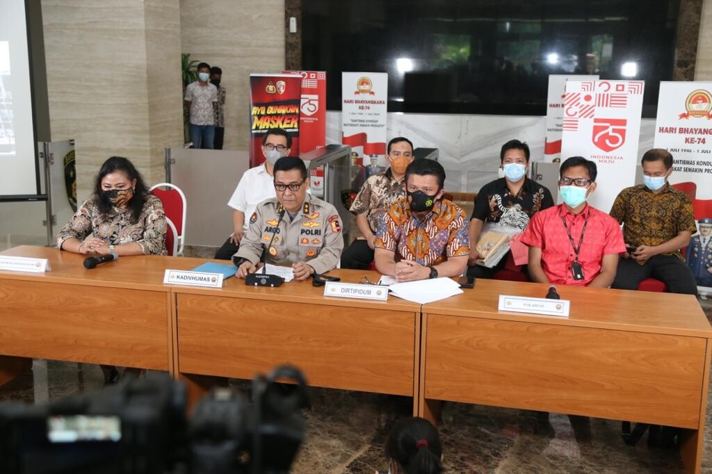 Kadiv Humas Polri Irejn Pol Argo Yuwono mengatakan ketiga tersangka tersebut diantaranya peminjam bendera PT APM dan perusahaan pengadaan pembersih lantai Top Cleaner dan alumunium composite panel (ACP).